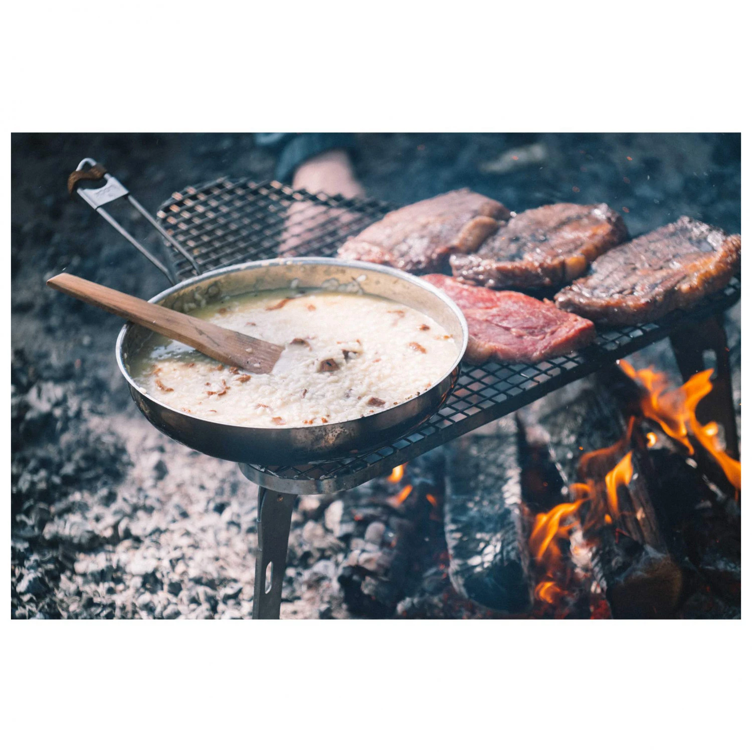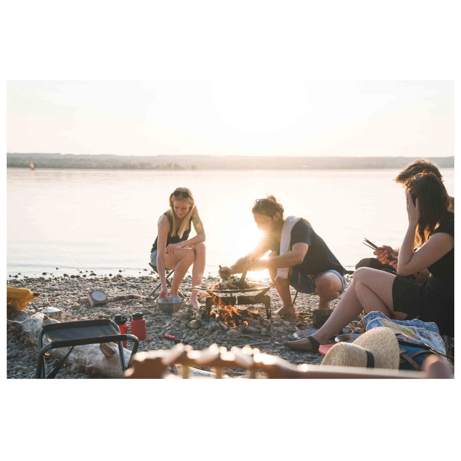 Warme Mahlzeiten und leckeres Grillgut über offenem Feuer: mit dem Aeril Trockenbrennstoffkocher von Primus! Sein stabiler Rost mit Edelstahlrahmen bietet Platz für mehrere Töpfe und Pfannen. Dank seiner Höhenverstellung lässt sich der Abstand zu den Flammen und damit die Kochtemperatur gut regulieren. Der Aeril birgt praktische Vorteile gegenüber einem Standardgrill, denn er ist leichter, stabiler und verschmutzt weniger. Auch im Vergleich zu selbstgebastelten Kochstellen-Konstruktionen bietet er mit seiner verlässlichen Stabilität und Sicherheit Vorteile.