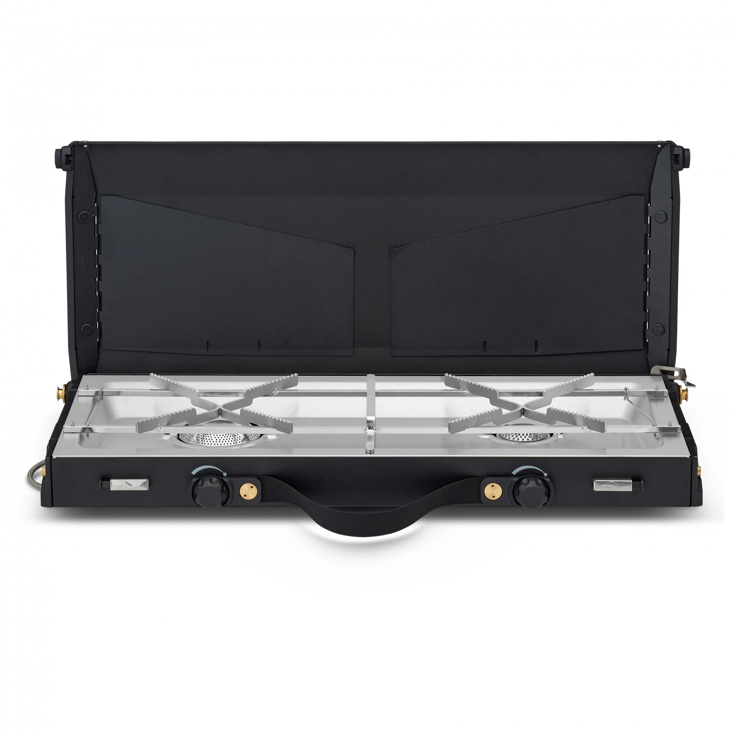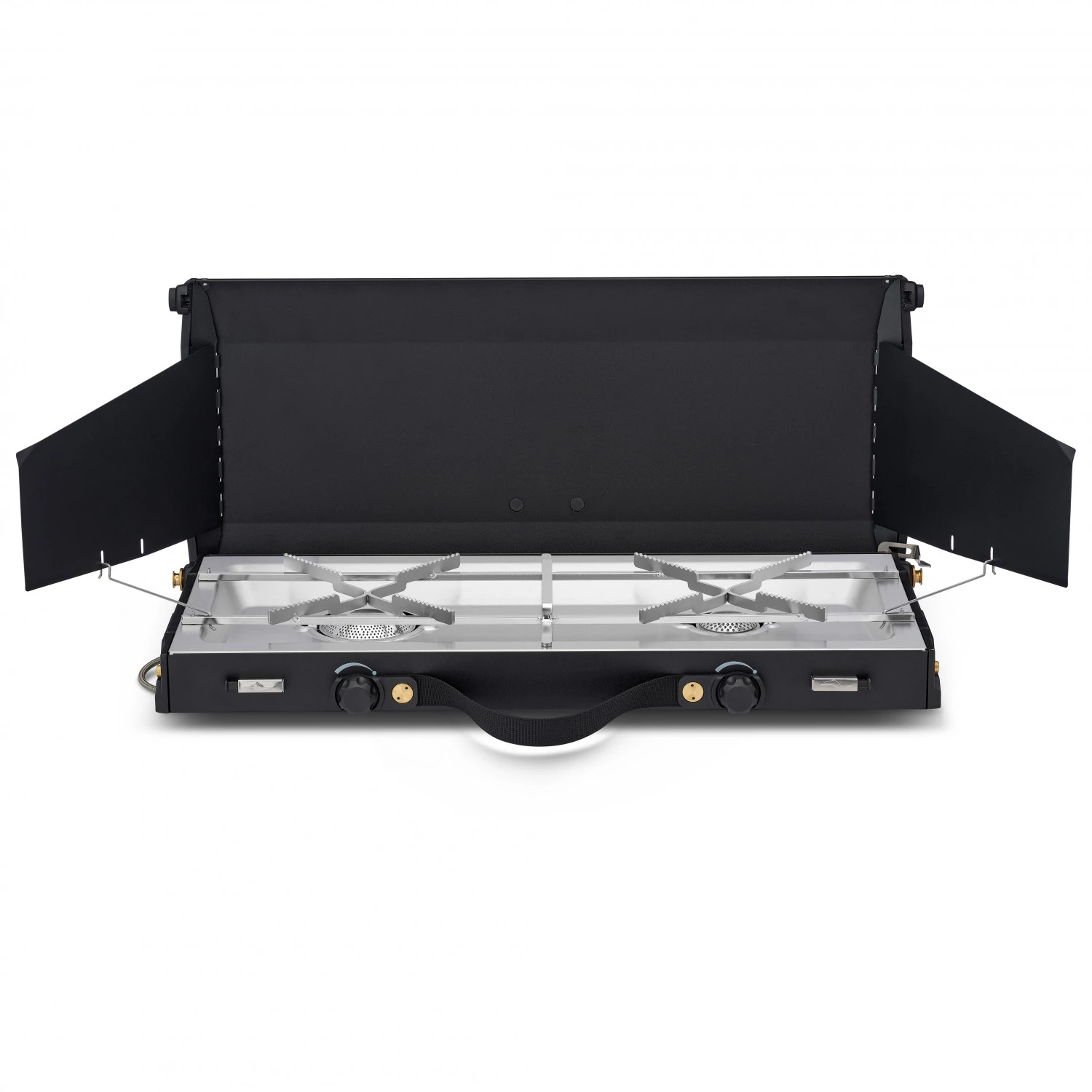 - Große Kochfläche mit zwei individuell regulierbaren Flammen