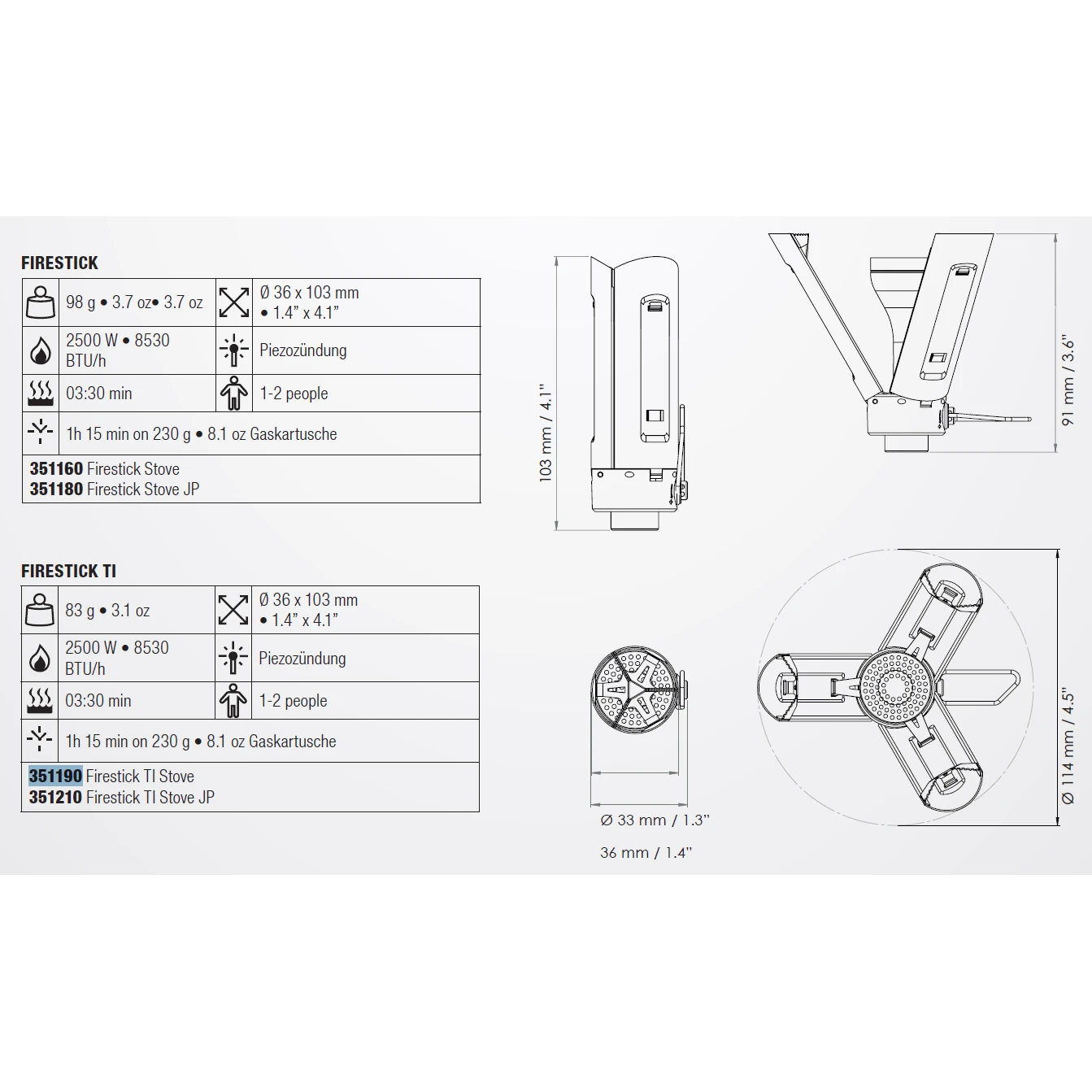 Der Fire Stick TI wurde identisch zum Fire Stick designt – kompakt und minimal im Packmaß, aber kompromisslos in Funktion und Qualität. Den Unterschied spürst du im geringeren Gewicht, da die Topfauflagen der TI Version aus hochwertigem Titan gefertigt sind.