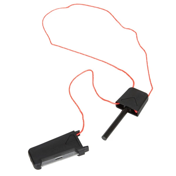 Der Ignition Steel kann an der langen Kordel um den Hals getragen werden und ist dadurch schnell zur Hand. Mit dem Schaber kannst du Material abtragen und Funken erzeugen, die eine Temperatur von 3000 °C haben. Sie entfachen zuverlässig trockenes Material und Kocher.