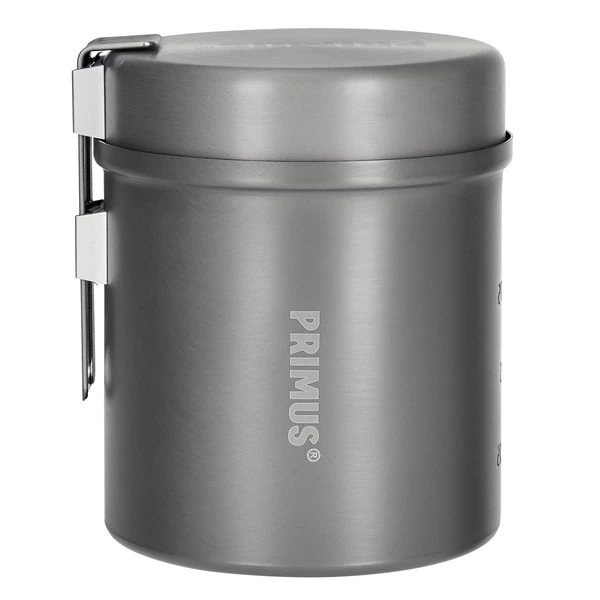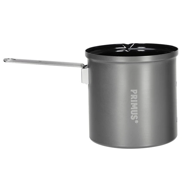 Das Material härter als klassisches Aluminium und lässt sich dank der Keramikbeschichtung leicht säubern. Du kannst in ihm kleine Mahlzeiten zubereiten oder Wasser für die Trekking-Nahrung kochen. Damit sich die Hitze über den gesamten Topfboden verteilt, ist dieser etwas dicker gefertigt und hat auf der Unterseite ein spiralförmiges Muster. Durch die bessere Hitzeverteilung brennen auch Speisen nicht so leicht an. Ein Ausgießer erleichtert das Umfüllen des Inhalts.